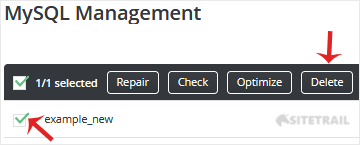 4. Click on Delete. Please do it again to confirm the removal of the database.
